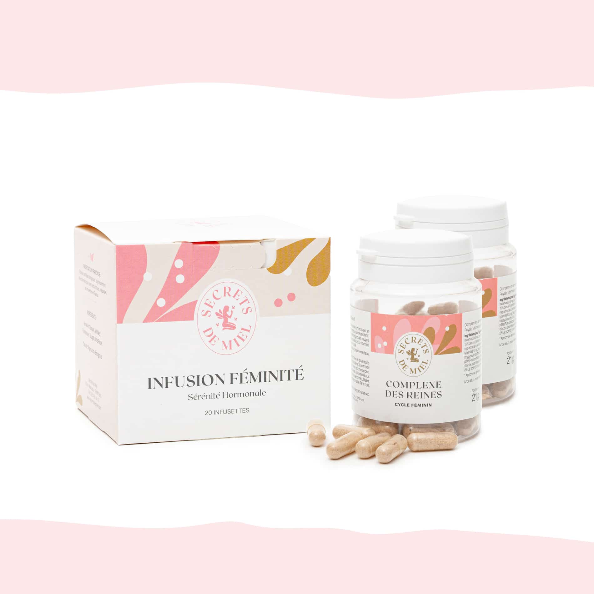 Capsella, Salbei und Symplocos wirken in Synergie mit Gelée Royale und unterstützen Sie vor und während Ihrer Menstruation. Vitamin B12, das für einen normalen Energiestoffwechsel und die Bildung roter Blutkörperchen unerlässlich ist, wirkt zusammen mit Vitamin B6 gegen Müdigkeit. Es spielt auch eine Rolle bei der Regulierung der Hormonaktivität. Das Ergebnis: Sie gewinnen vor und während Ihrer Zyklen an Energie und Wohlbefinden zurück.