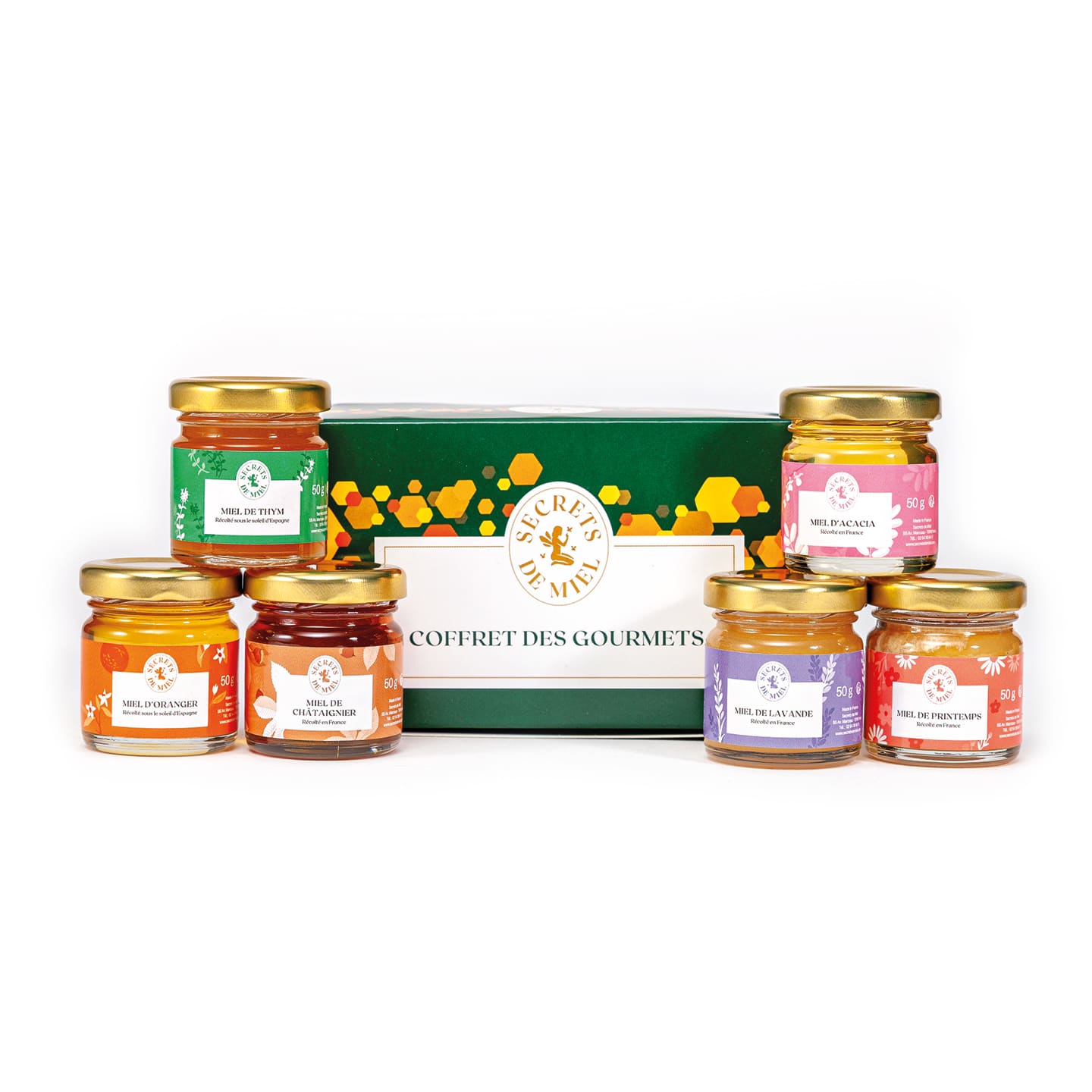 Schachtel mit 6 Gläsern mit 50 g Honig.