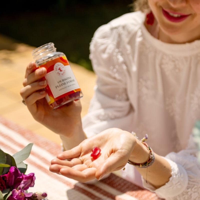 Wir wollten ein zu 100 % natürliches Nahrungsergänzungsmittel entwickeln, das uns in Topform bringt und auf die Bedürfnisse von Erwachsenen und Kindern zugeschnitten ist. Wir haben dann ein Familienformat in Form von Gummibärchen mit einem leicht säuerlichen Geschmack vorgeschlagen, das den Organismus beim Wechsel der Jahreszeiten ankurbeln würde. Vitamine für die ganze Familie.