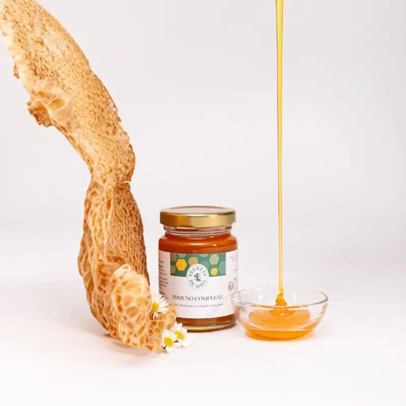 Honig, Propolis, Kurkuma und Echinacea bilden diesen fabelhaften Komplex, der das reibungslose Funktionieren Ihrer natürlichen Abwehrkräfte unterstützt, die für Ihren Körper unerlässlich sind. Eine tägliche Geste für Ihr Wohlbefinden.