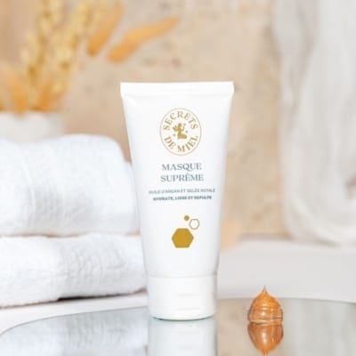 Verwenden Sie unsere Supreme-Maske mit Arganöl und Gelée Royale zusammen mit unserem Tee Jugendliche Haut. Sein Versprechen? Das Geheimnis einer mit Feuchtigkeit versorgten und jugendlich strahlenden Haut.