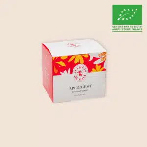 Kombinieren Sie unsere Méliprune mit unserem Verdauungs Tee! Sein Versprechen? Ein einzigartiger Wohlfühltee, der die Verdauung fördert!