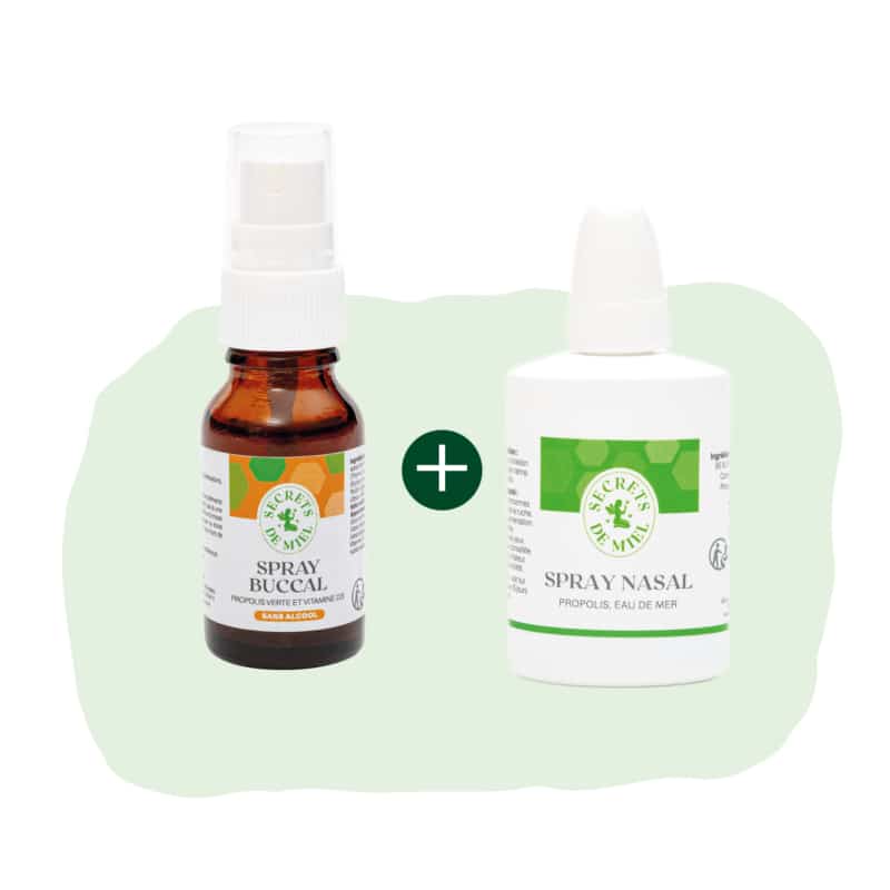 • Un Spray buccal à la Propolis Verte ou un Spray buccal à la Propolis, Miel et Plantes