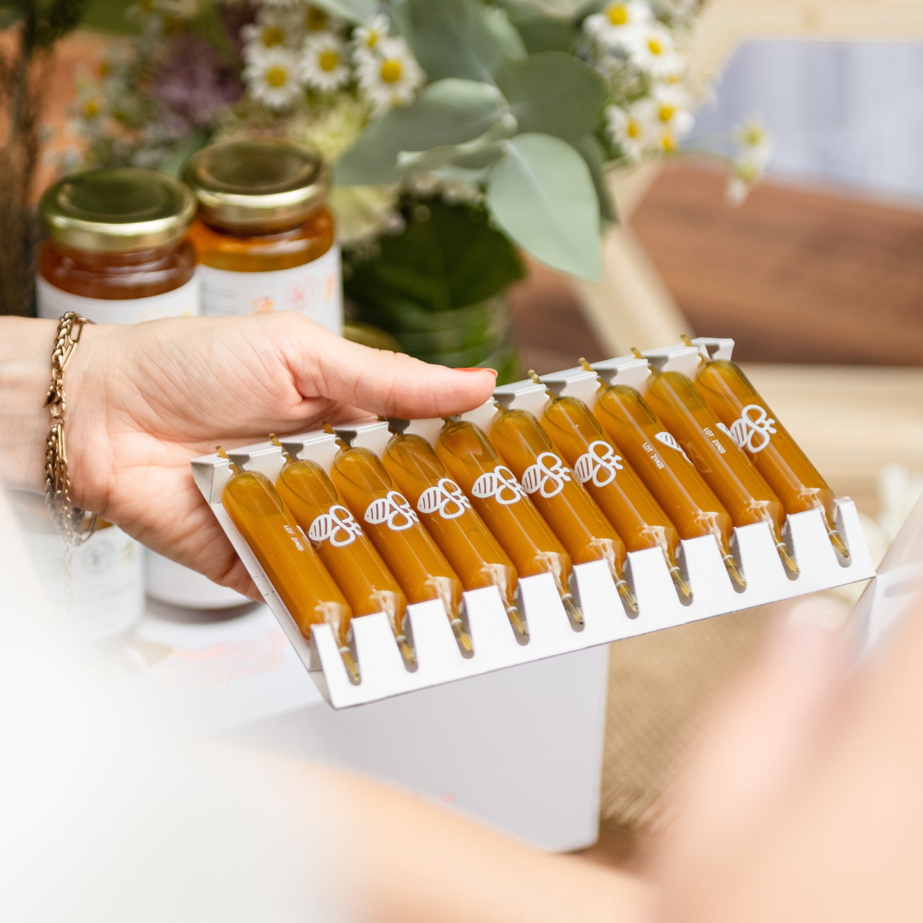 Alle Schätze aus dem Bienenstock in einer Ampulle! Ein 100% natürlicher Cocktail für einen allgemeinen Energieschub. Ihr Verbündeter in Zeiten der Überanstrengung, beim Wechsel der Jahreszeiten oder wenn Sie ein Energietief spüren! Mit diesem Cocktail sind Sie bereit, alles zu bewältigen!