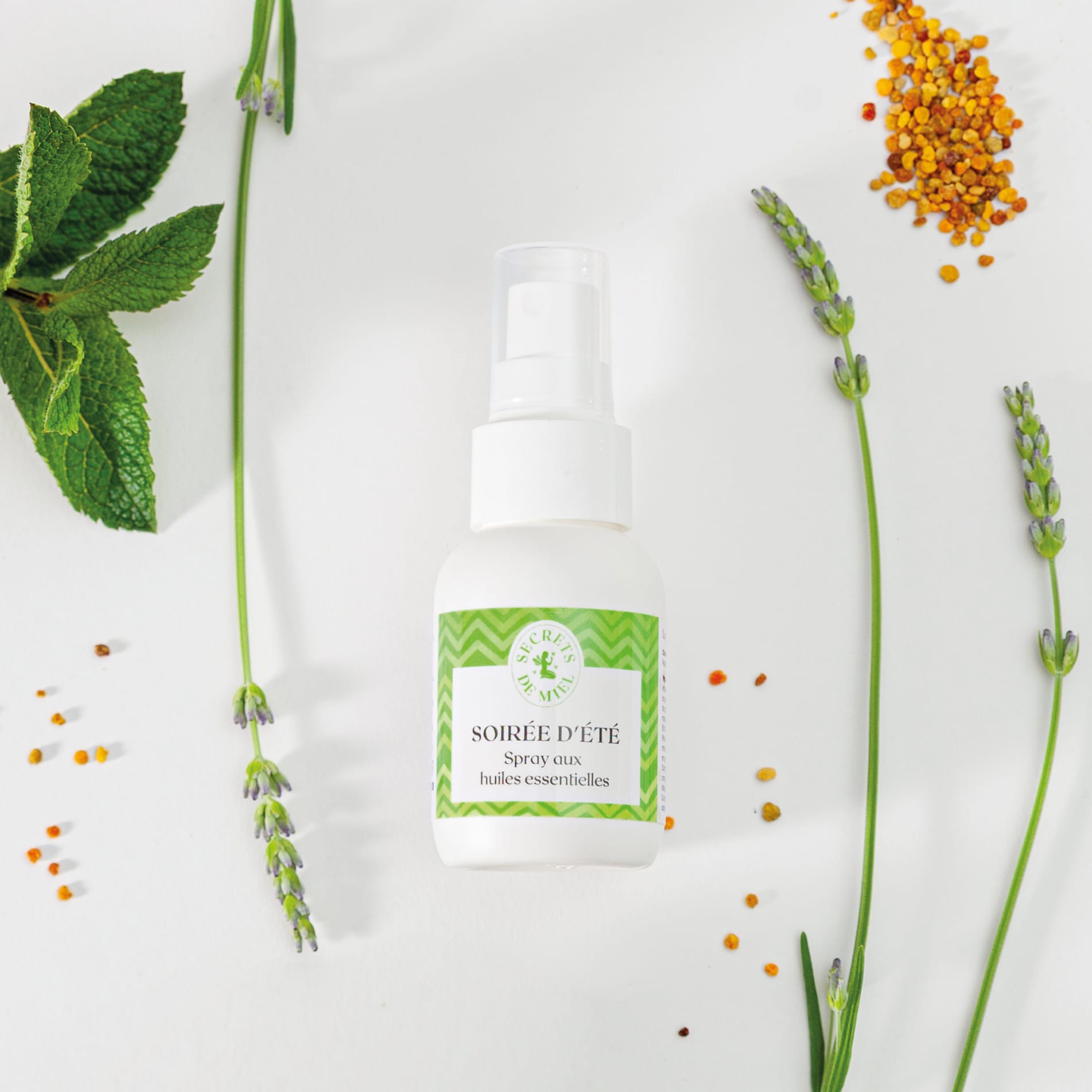 Inhaltsstoffe: Sesamum Indicum Seed Oil (Sesamöl), Eucalyptus Radiata Leaf/Stem Oil (Ätherisches Eukalyptusöl), Pelargonium Graveolens Oil (Ätherisches Geranienöl), Lavandula Angustifolia Oil (Ätherisches Lavendelöl), Citronellol (Ätherisches Lemongrassöl), Linalool (Aromastoff aus Pflanzen), Helianthus Annuus Seed Oil (Sonnenblumenöl), Mentha Piperita Oil (Pfefferminzöl), Geraniol, Citral (Zitronengrasöl), Pollen Extract (Pollen), Tocopherol (Vitamin E), Limonene, Coumarin (Tonkabohne), Eugenol (Gewürznelke)