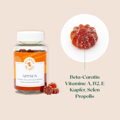 Wenn die ersten Sonnenstrahlen kommen, möchte man einen schönen gebräunten Teint haben, aber ohne die Gesundheit der Haut zu gefährden! Mit unseren Gummibärchen Sonne können Sie Ihre Haut auf die Sonne vorbereiten, die Bräune optimieren und gleichzeitig etwas für Ihre Gesundheit tun!