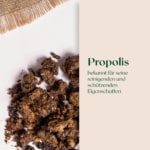 • Propolis : ein Schatz aus dem Bienenstock mit heilenden und schützenden Eigenschaften, der dazu beiträgt, die Regeneration der Haut zu beschleunigen.