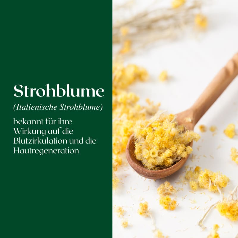 • Italienische Strohblume: eine wertvolle Pflanze mit reparierenden und durchblutungsfördernden Eigenschaften, die ideal ist, um das Auftreten von Blutergüssen zu begrenzen.