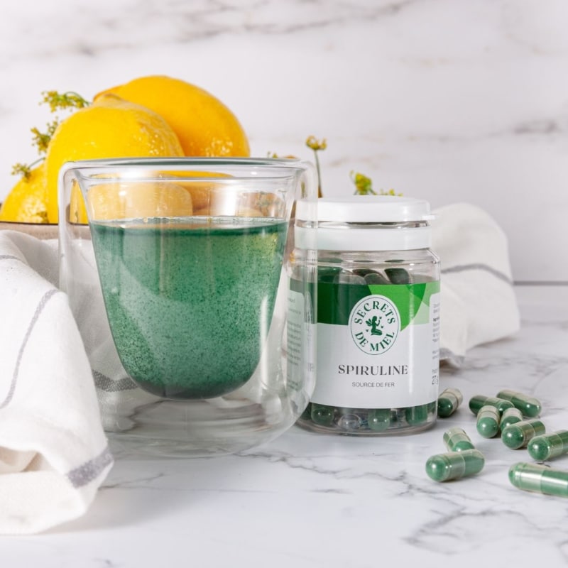 Kombinieren Sie unsere französische Spirulina mit unserem Imkerschatz! Sein Versprechen? ein echter Vitalitätscocktail für die ganze Familie!
