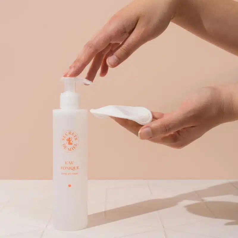 Das Tonic Wasser ist unerlässlich, um das tägliche Reinigungs- und Abschminkritual zu vervollständigen. Tragen Sie unser Honig- und Rosenwasser auf das gesamte Gesicht, den Hals und das Dekolleté auf, um die Poren zu verfeinern, die Haut zu beleben und sie auf die Aufnahme aller Wohltaten der Pflegeprodukte vorzubereiten: Seren, Öle, Tages- und Nachtcreme!